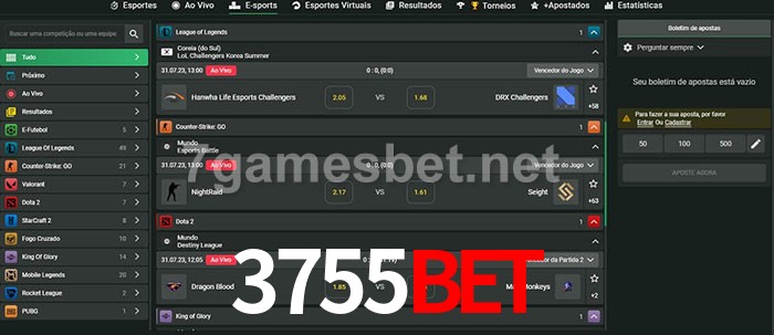 O 3755bet oferece uma grande seleção de opções de apostas em e-sports com probabilidades competitivas